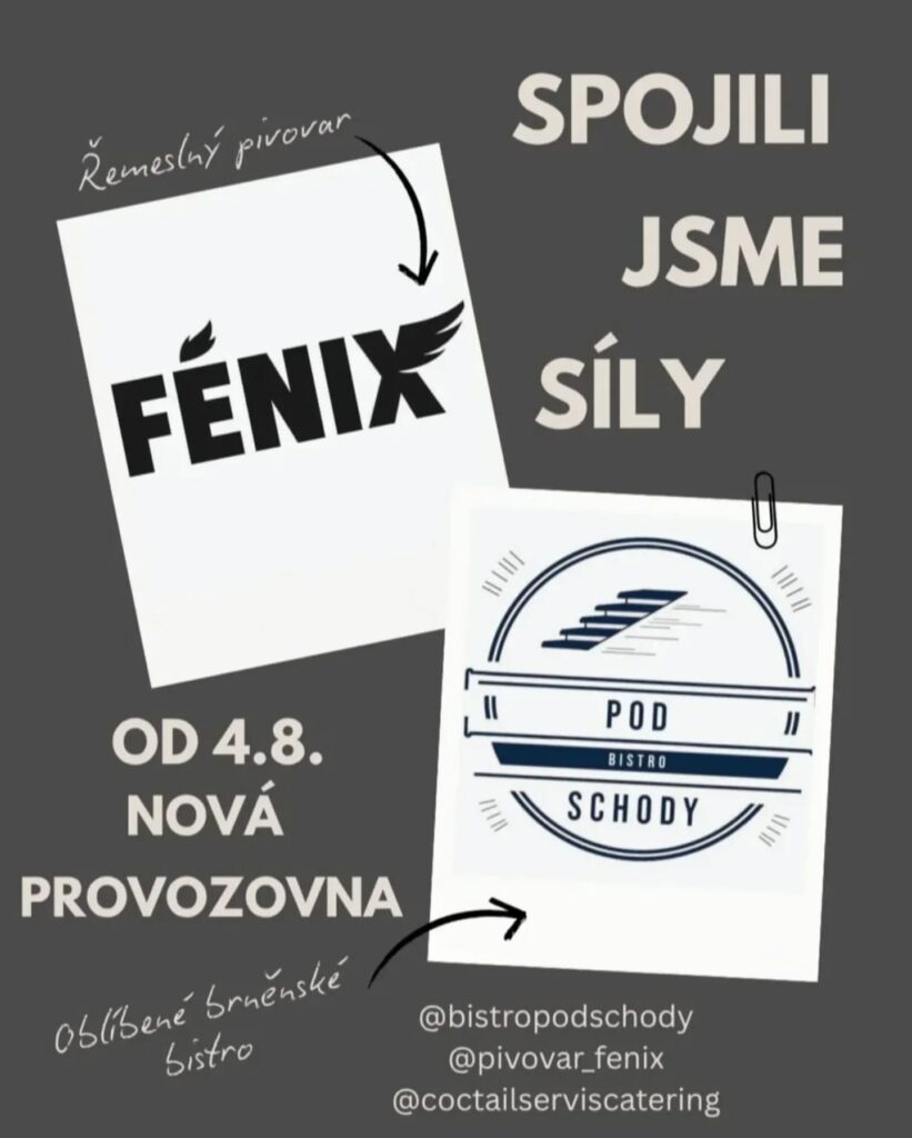 jsme se jako Bistro pod schody spojili s pivovarem Fénix. Výsledkem je hostinec se skvělou kuchyní, zahrádkou a útulným salónkem, kde si můžete vychutnat denní menu i večerní speciality z jídelního lístku.